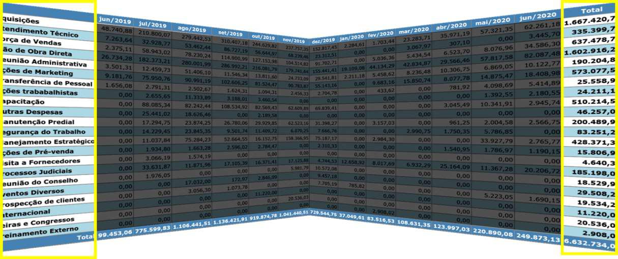 As shown in figure 3.17, the split cube report placed in a side-by-side visualization highlights "external columns". Thus, the external columns generate the pie chart in figure 3.16(a). Applying the same criteria for rows, we have the bar chart in figure 3.16(b). Therefore, the external rows and columns are the "Overview" and should appear first.